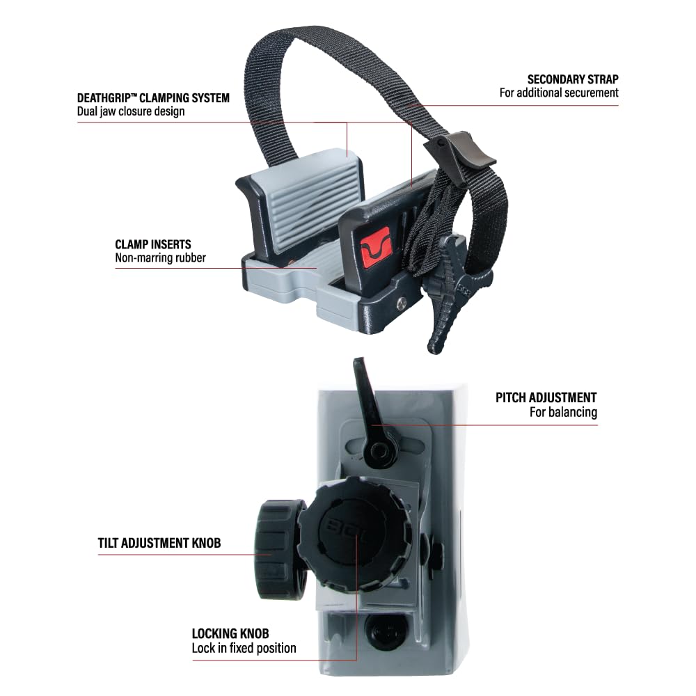 The secure clamp holds your firearm or equipment firmly in place, offering steady, hands-free operation.