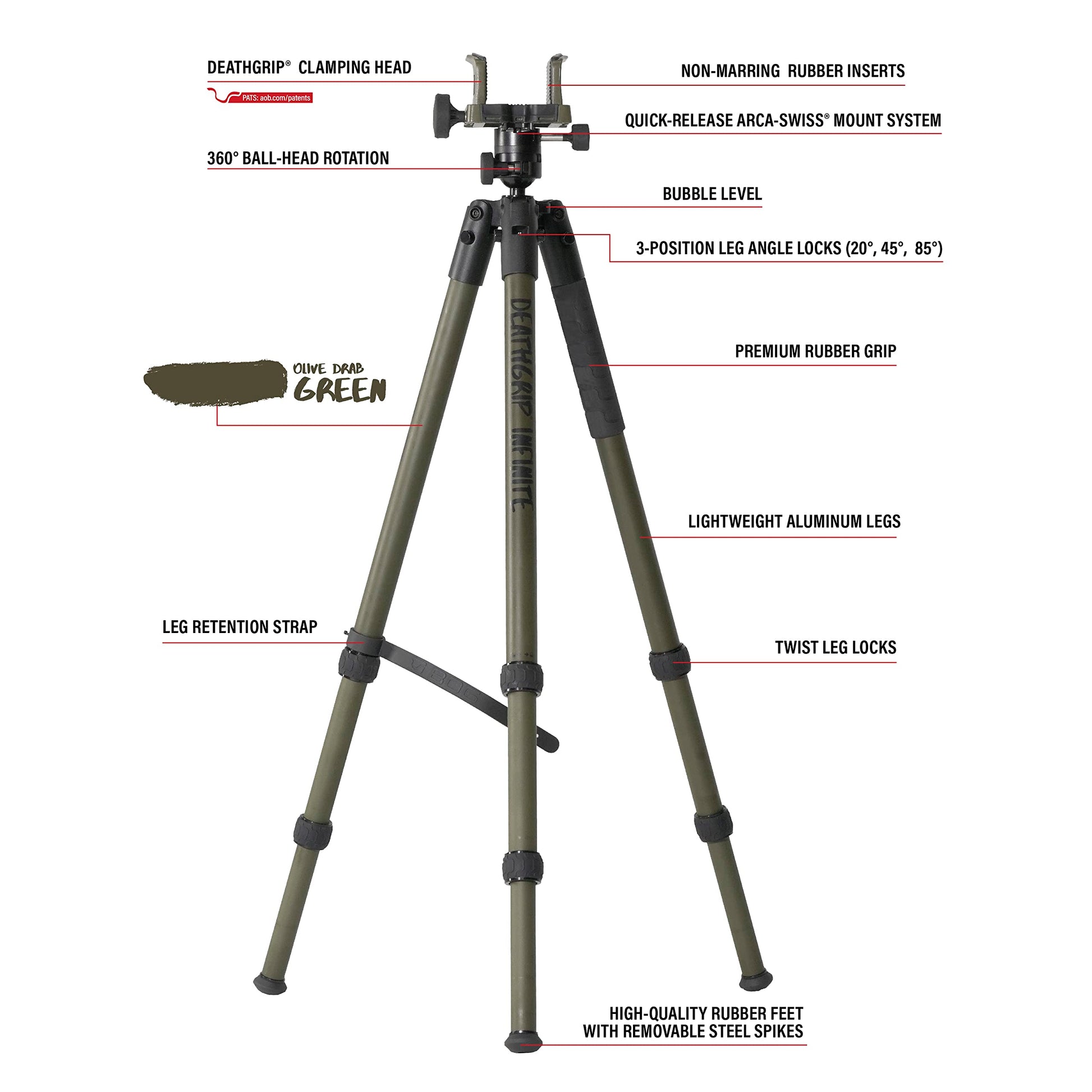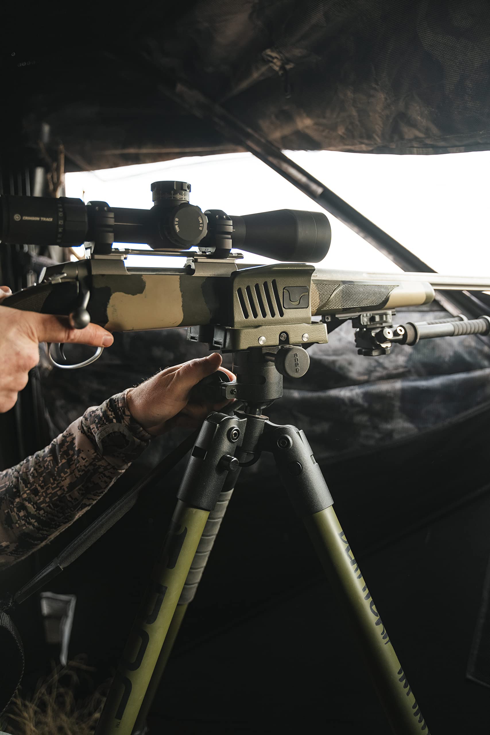 This adjustable hunting and shooting tripod is built with a durable aluminum frame designed for stability in rugged outdoor conditions. With a secure clamping system, multi-position legs, and smooth rotation, it provides a reliable hands-free shooting platform for hunters, target shooters, and outdoor enthusiasts.